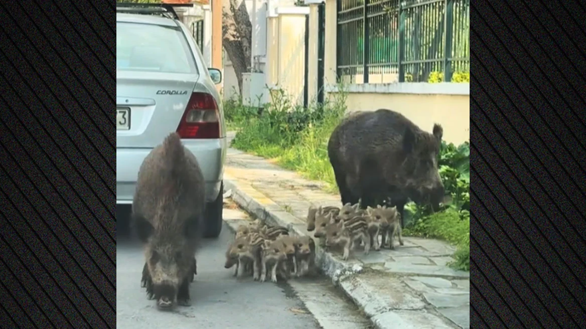 თრაკომაკედონაში ტახი ტყიდან ოჯახთან ერთად სასეირნოდ ჩამოვიდა