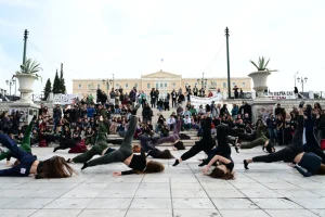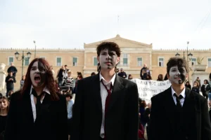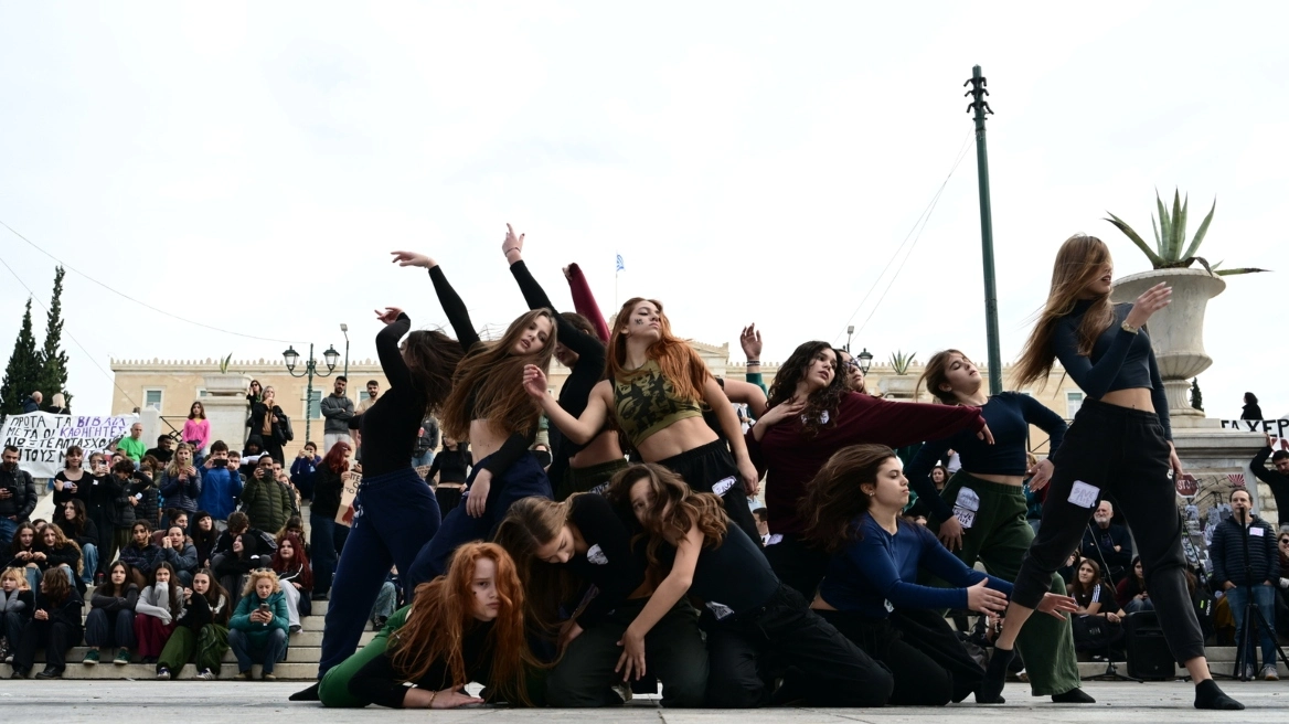 ათენის სამხატვრო და მუსიკალურო სკოლის სტუდენტებმა სინდაგმაზე საპროტესო აქცია გამართეს.