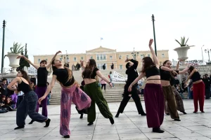 საპროტესტო აქციის მოანწილეებმა სინდაგმაზე საცეკვაო და მუსიკალური ნომრები, სპექტაკლებიდან ნაწყვეტები შესთავაზეს გამვლელებს.