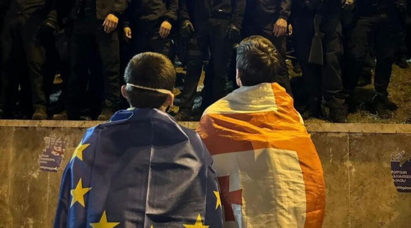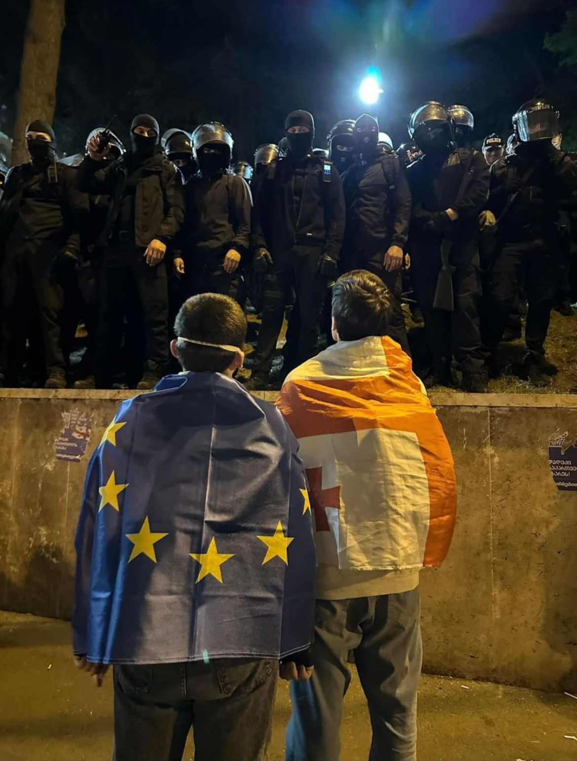 დაკავებულია სკოლის მოსწავლე სანდრო ჯოხაძე, რომელსაც ცნობილ ფოტოზე, სადაც ორი ბიჭი ევროკავშირისა და საქართველოს დროშებით დგანან პოლიციელების წინ, საქართველოს დროშა აქვს შემოხვეული.