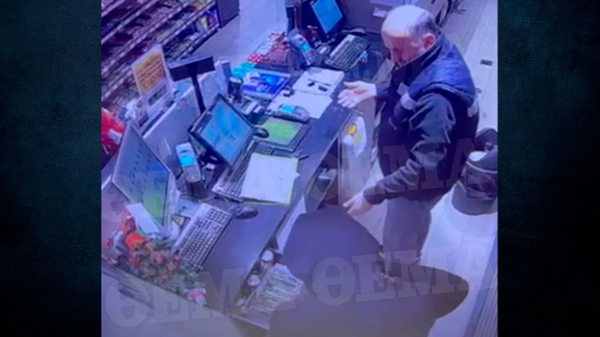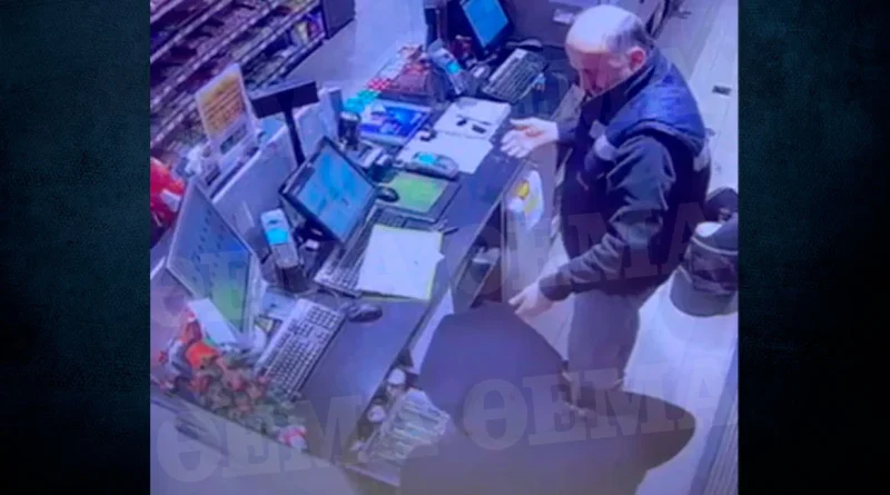 როგორც protothema.gr-ის მიერ გავრცელებულ ვიდეოკადრებში ვხედავთ მძარცველი ბენზინგასამართი სადგურის მაღაზიაში იარაღით შევარდა, მოლარეს სიცოცხლის მოსპობით დაემუქრა და სალაროს დაცლა დაიწყო.