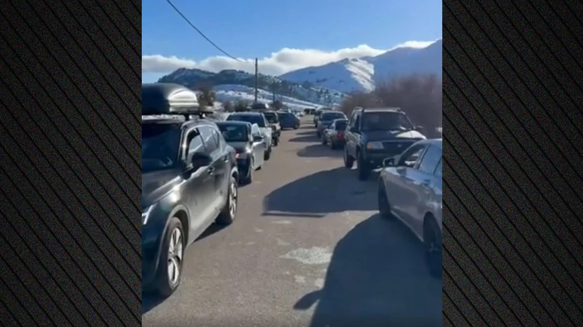 კორინთია: ტრიკალას სათხილამურო ცენტრისკენ მიმავალ გზაზე კილომეტრიანი რიგებია