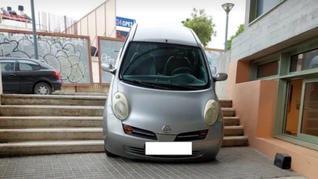 კრიტზე, ირაკლიოში მდებარე კულტურის ცენტრის თანამშრომლებს მოულოდნელი სანახაობა დახვდათ, როდესაც დღეს დილით კიბეებზე „გაჩერებული“ მანქანა დაინახეს.
