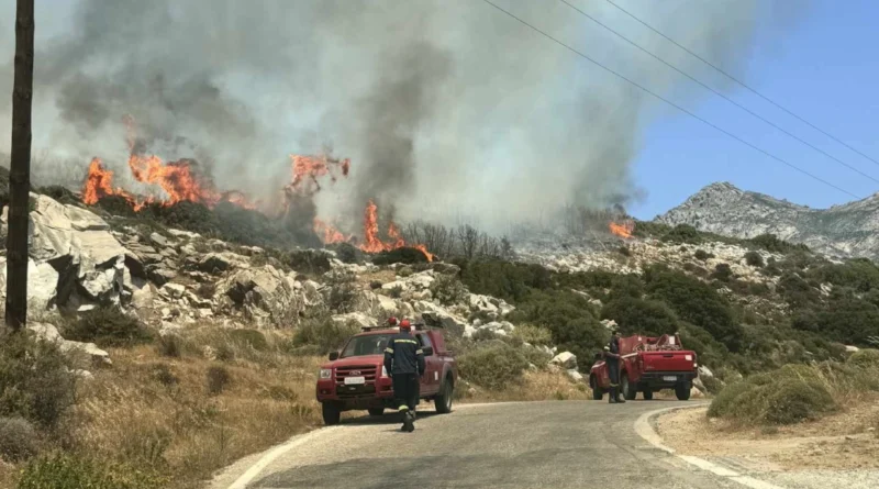 კუნძულ ნაქსოსზე დღეს შუადღეს, 18 ივნისს გაჩენილი ხანძარი ძლიერი ქარებისა და მაღალი ტემპერატურის გამო უფრო და უფრო დიდ ტერიტორიას ედება.