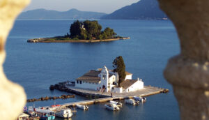 ტურისტები ტკბებიან პონდიკონისის საუკეთესო ხედებით Panagia Vlacherna-დან, ეკლესია-მონასტრიდან, რომელიც მდებარეობს იმავე პაწაწინა კუნძულზე, რომელიც ხმელეთს უკავშირდება პატარა ხიდით.