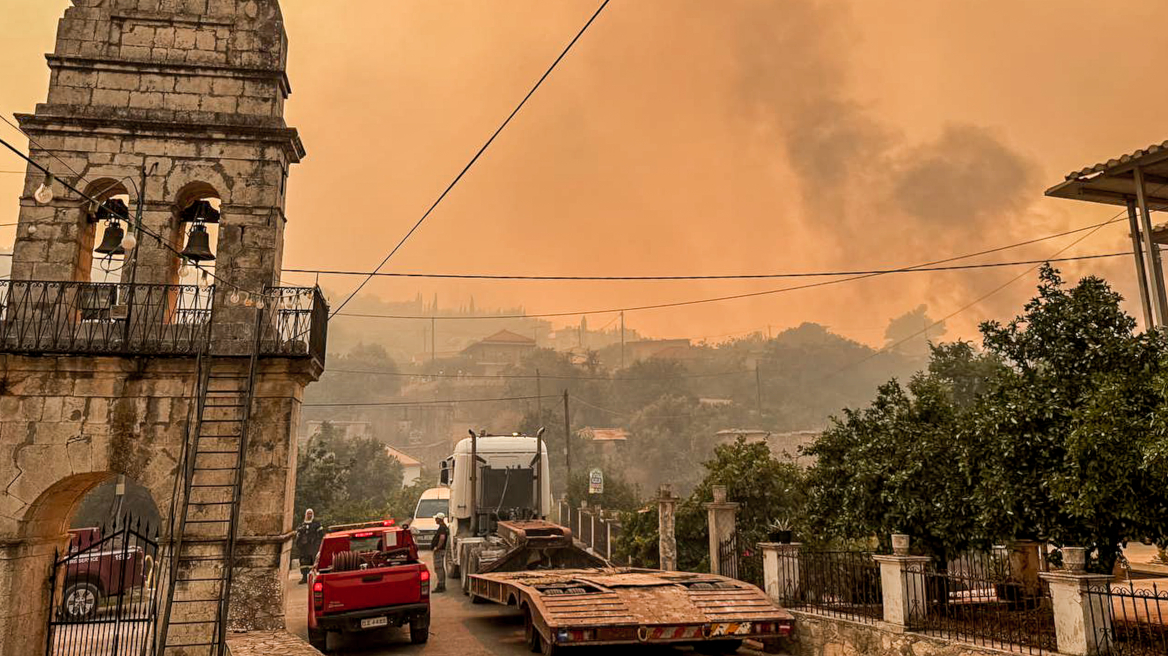 კუნძულის მერმა, გიორგოს სტასინოპულოსმა განაცხადა, რომ ხანძარმა სოფელშიც შეაღწია და უკვე დამწვარია 5-6 სახლი.
