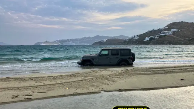 მიკონოსი: ბერძენ წყვილს სურდა ზღვაში ჯიპით ესეირნა, მაგრამ ავტომანქანა ქვიშაში გაიჭედა