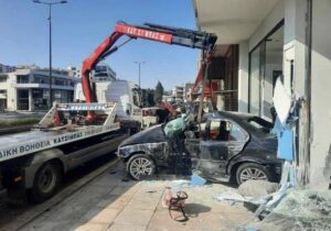 მძიმე ავარია კიფისიას გამზირზე: ავტომობილი მაღაზიის ვიტრინას შეეჯახა
