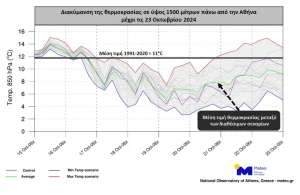 ტემპერატურა საგრძნობლად დაიკლებს სრულიად ქვეყნის მასშტაბით და განსაკუთრებით კი საბერძნეთის ჩრდილოეთ ნაწილში.