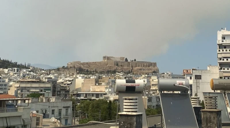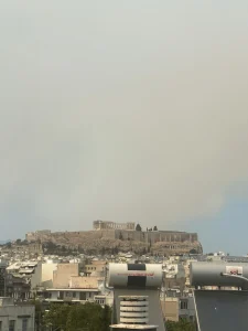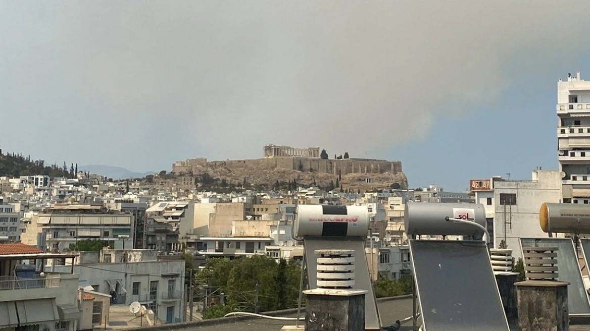 ძლიერმა ქარებმა, რომლებიც დღის განმაბლობაში არ გაჩერებულან, პარნითაში გაჩენილი ცეცხლის შედეგად გამოწვეული კვამლი ათენის ცენტრალურ ქუჩებში გადმოიტანეს.