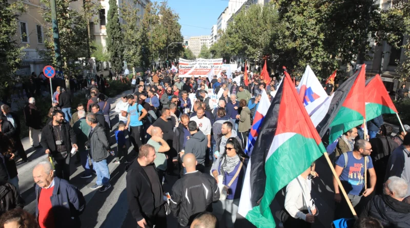 საყოველთაო გაფიცვაში მონაწილე პროფკავშირების მონაწილეობით ათენის ცენტრში მიმდინარეობს აქცია – გადაკეტილია სტადიუ და პანეპისტიმიუ