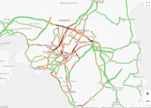 ატიკის ქუჩაზე დიდი საცობებია. მოძრაობის დიდი შეფერხება არის კიფისოს ქუჩაზე და გაწითლებულია მთელი ათენის გამზირის სამოძრაო ხაზი.
