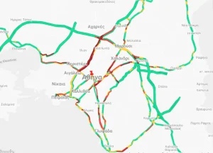 განსაკუთრებული გადაადგილების შეფერხება აღინიშება კიფისოს, კიფისიას და ათინონის გამზირებზე. აღნიშნულ გზებზე ავტომანქანები თითქმის უძრავ მდგომარეობაში დგანან.