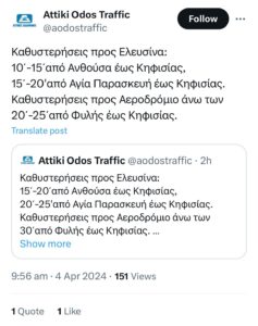 საცობებია ასევე კატეხაკიდან-ფილოთეიმდე (Κατεχάκη-Φιλοθέη) და ხელექსპოდან-იღიამდე (ΧΕΛΕΞΠΟ-Υγεία)