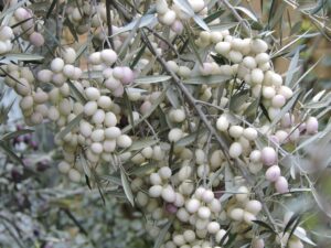 წარმოუდგენელი თეთრი ზეთისხილი, რომელიც ცნობილია როგორც ლევკოელია ან ლევკოკარპა.
