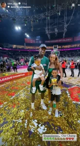 კალათბურთელების მეუღლეებმა მათ შვილებთან ერთად გადაღებული ფოტოები გამოაქვეყნეს სოც. მედიაში. ისინი მწვანე ფერებში არიან გამოწყობილები და ასე გამოხატავენ მხარდაჭერას.