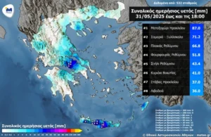 ძლიერი წვიმებით ჩაიარა შაბათმა კრეტასა და ვიოტიაზე, თუმცა დედაქალაქში მხოლოდ უმნიშვნელო ტემპერატურის ვარდნა და ძიერი ქარი შეინიშნებოდა.