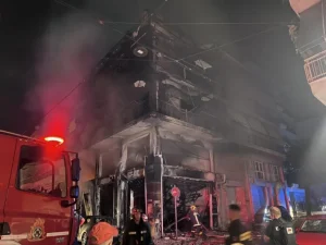 შაბათს ღამით, დაახლოვებით 23:00 საათისკენ, კატო პატისიაზე ფსარუდაკისა და პარასკევოპულუს ქუჩების კვეთაზე მდებარე კორპუსის პირველ სართულზე ხანძარი გაჩნდა.