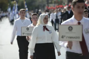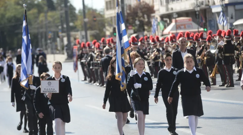 სინდაგმაზე გამართული მოსწავლეთა აღლუმები 28 ოქტომბრის აღსანიშნავად კულმინაციას აღწევს.