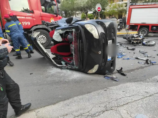 შეჯახება იმდენად ძლიერი იყო, რომ მოტოციკლიდან გადმოვარდნილი ახალგაზრდა ამობრუნებული ავტომობილის სალონში შევარდა.