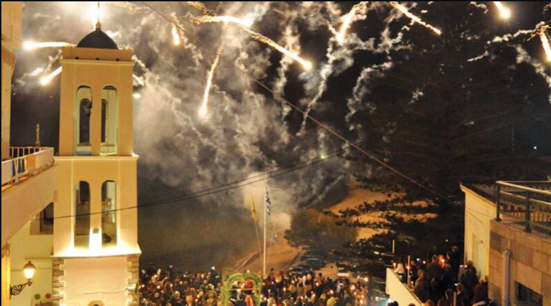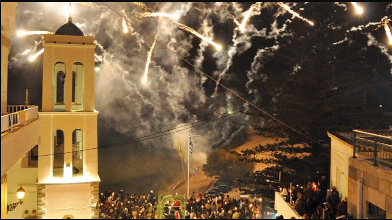 ამ ღამეს ბერძნები მიდიან ეკლესიებში ლიტურგიაზე დასასწრებად და ელოდებიან შუაღამეს.